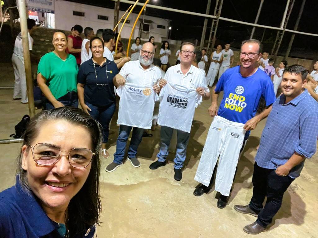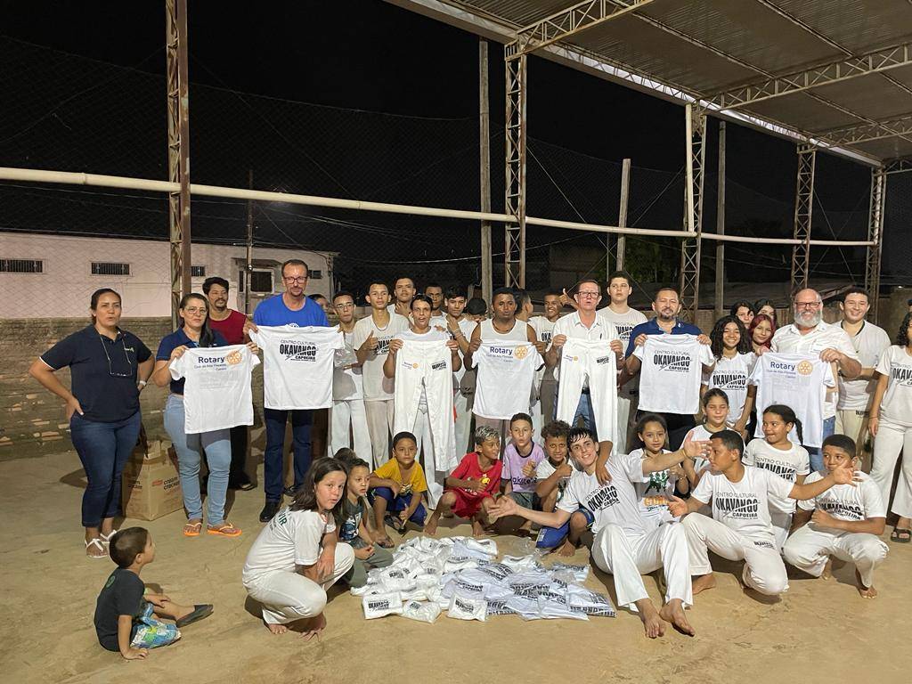 Dia 27 de outubro, o Presidente Mauro Weber e demais rotarianos, estiveram no Centro de Treinamento Okavango no bairro Vila Nova, fazendo a entrega de Kit de Uniformes para atender meninos e meninos, que faz parte do Grupo Cultural Okavango de Capoeira. Essa turma que participa do projeto Okavango de Capoeira, criado com a finalidade de tirar das ruas crianças e adolescentes, e até mesmo adultos, carentes e situação de vulnerabilidade social. Para esses meninos e meninas as aulas de capoeira são disponibilizadas de forma gratuitas. E acontece semanalmente no Centro Comunitário Padre Geraldo da Silva, as terça e quintas-feiras as 18:30. O professor Alan Aparecido Luiz, popular Angolano que trabalha com crianças de várias faixas etárias, não só ensinamos a capoeira, mas também valores familiares, disciplina, respeito e educação. Valores esses que é de suma importância para a comunidade. Lembrando que a capoeira é uma representação cultural que mistura esporte, luta, dança, cultura popular, música e brincadeira. Caracteriza-se por movimentos ágeis e complexos, onde são utilizados os pés, as mãos e elementos ginástico-acrobáticos. Diferencia-se das outras lutas por ser acompanhada de música. Um dos significados da palavra capoeira refere-se às áreas de mata rasteira do interior do Brasil. A prática da capoeira trabalha a coordenação motora, aprimora a flexibilidade, equilíbrio e destreza, alivia as tensões do dia a dia, proporciona criatividade e liberdade de movimentos