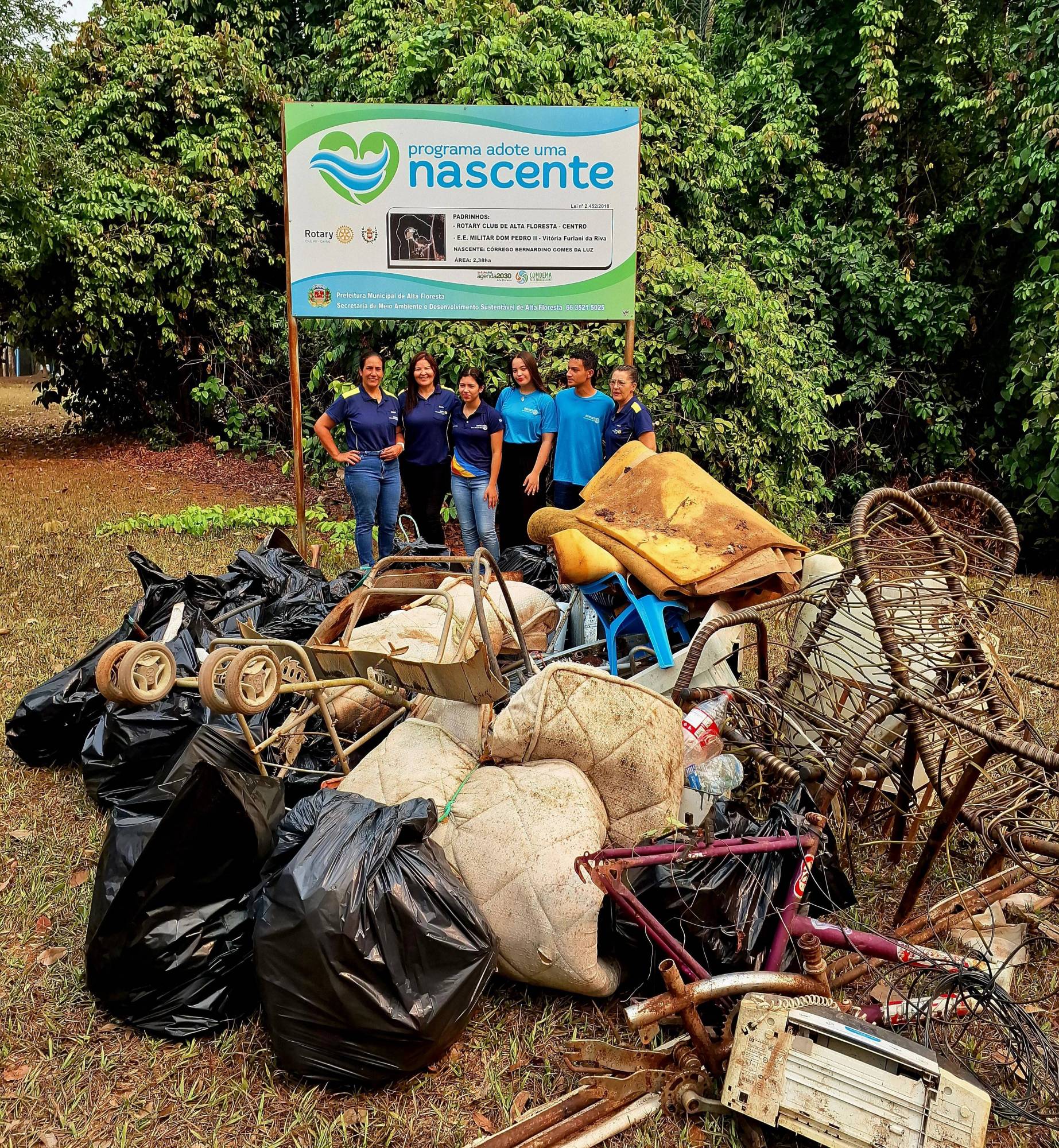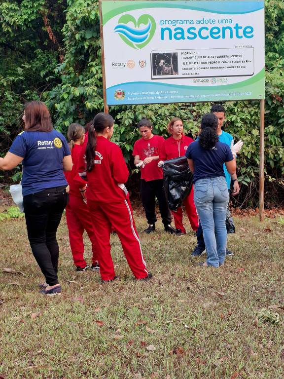 O Rotary Club de Alta Floresta Centro, em parceria com o Colégio Militar de Alta Floresta, o Tiro de Guerra e o SENAI, realizou uma importante ação de limpeza na nascente do Córrego Bernardino. Paralelamente, em colaboração com a equipe de brigadistas do Corpo de Bombeiros, também promovemos a limpeza da nascente Tiradentes. Essas ações fazem parte do programa "Adote uma Nascente", promovido pela Prefeitura Municipal de Alta Floresta, com o objetivo de preservar e proteger os recursos hídricos da região, além de conscientizar a comunidade sobre a importância da água e da sustentabilidade. Agradecemos profundamente a todos os envolvidos por seu compromisso e dedicação. A união entre essas instituições fortalece nossa comunidade e promove a conservação ambiental. Juntos, estamos contribuindo para um futuro mais saudável e sustentável para nossa cidade!