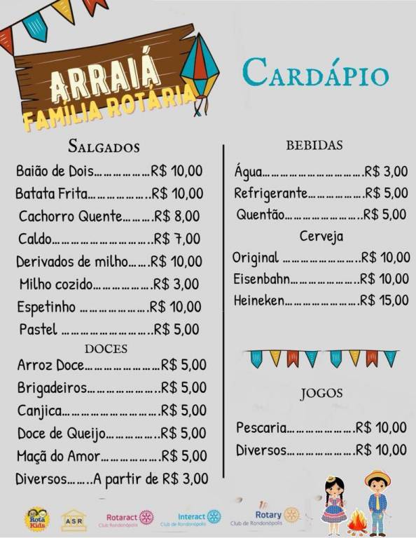 O evento reuniu o Rotary Club de Rondonópolis Leste, Rotary Club de Rondonópolis Rondon, Rotary Club de Rondonópolis Rio Vermelho, Rotary Club de Rondonópolis Distrito Vila Operária, Rotary Club de Rondonópolis Rosa Bororo, Rotary Club de Rondonópolis Cerrado, Rotary Club de Rondonópolis Rondonópolis, Rotary Club de Rondonópolis Comunidade, Interact Club Rondonópolis, Interact Club Rondonópolis Tiradentes, Rotaract Club, Associação de Senhoras de Rotarianos e Rotakids. Uma festa julina para a família rotariana e a sociedade rondonopolitana.