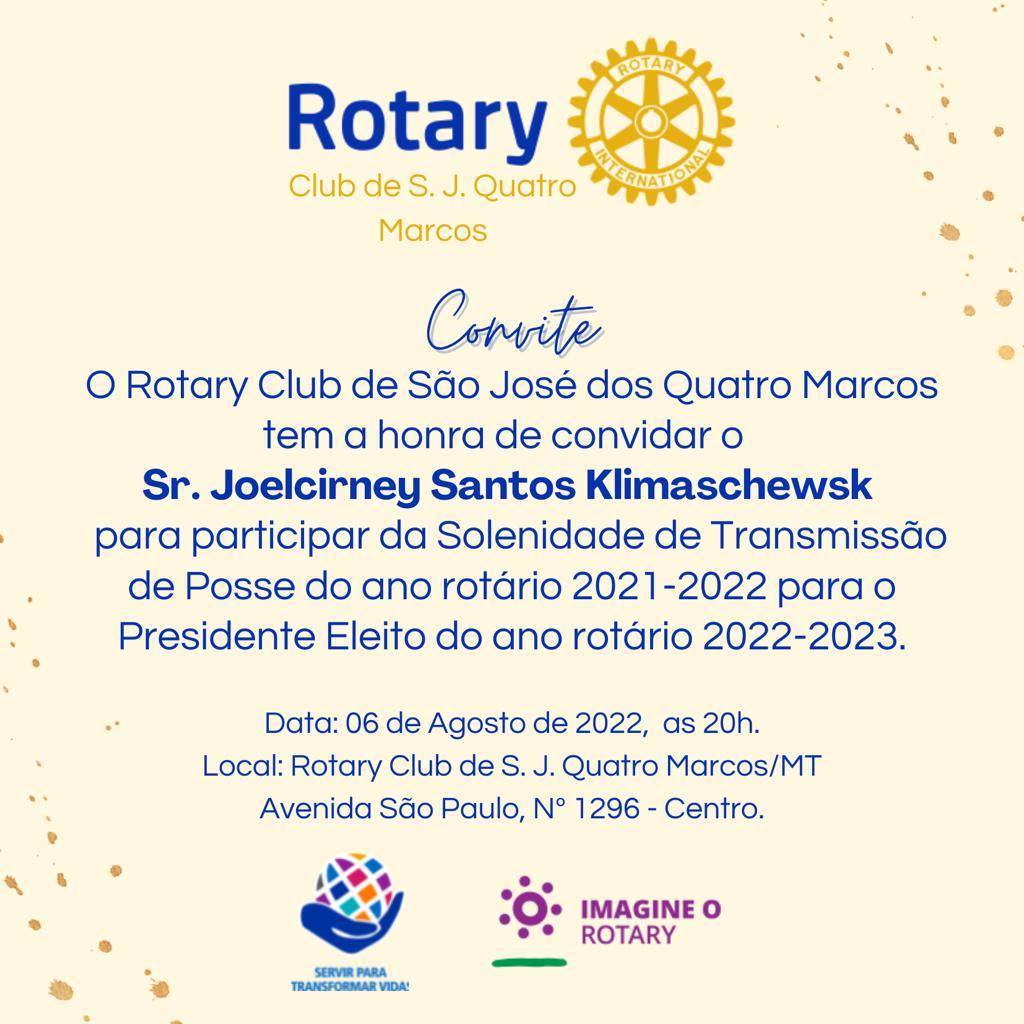 Gratidão ao Presidente 2021-22 João Faneli e todos os companheiros e companheiras do Rotary Club de São José dos Quatro Marcos.