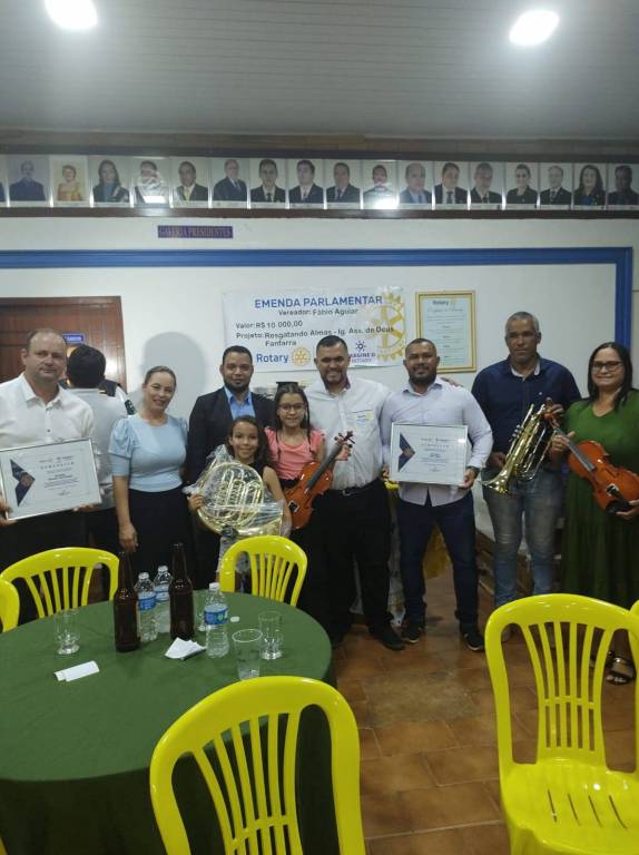 - R$ 10.000,00 para o Projeto Resgatando Almas da Igreja Assembleia de Deus, com a compra de instrumentos musicais para a Fanfarra;