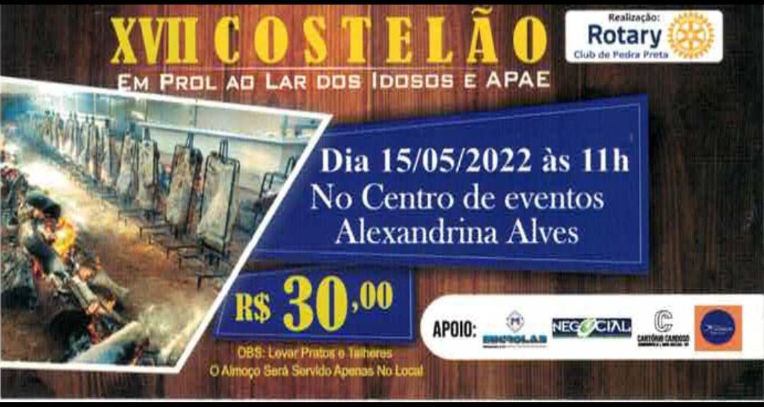 O ROTARY CLUB DE PEDRA PRETA REALIZOU NO DIA 15 DE MAIO O TRADICIONAL COSTELÃO DO ROTARY CLUB DE PEDRA PRETA EM SUA 17° EDIÇÃO