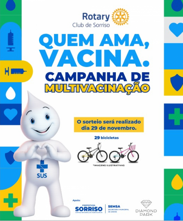 Já a segunda etapa será a Campanha Municipal de Multivacinação “Quem Ama, Vacina”, realizada entre 8 de outubro e 29 de novembro, pela Prefeitura, por meio da Secretaria Municipal de Saúde (Semsa) e apoio do Rotary Club de Sorriso e do Diamond Park. Além da atualização vacinal, a iniciativa contará com o sorteio de 29 bicicletas, que acontecerá no encerramento da campanha.